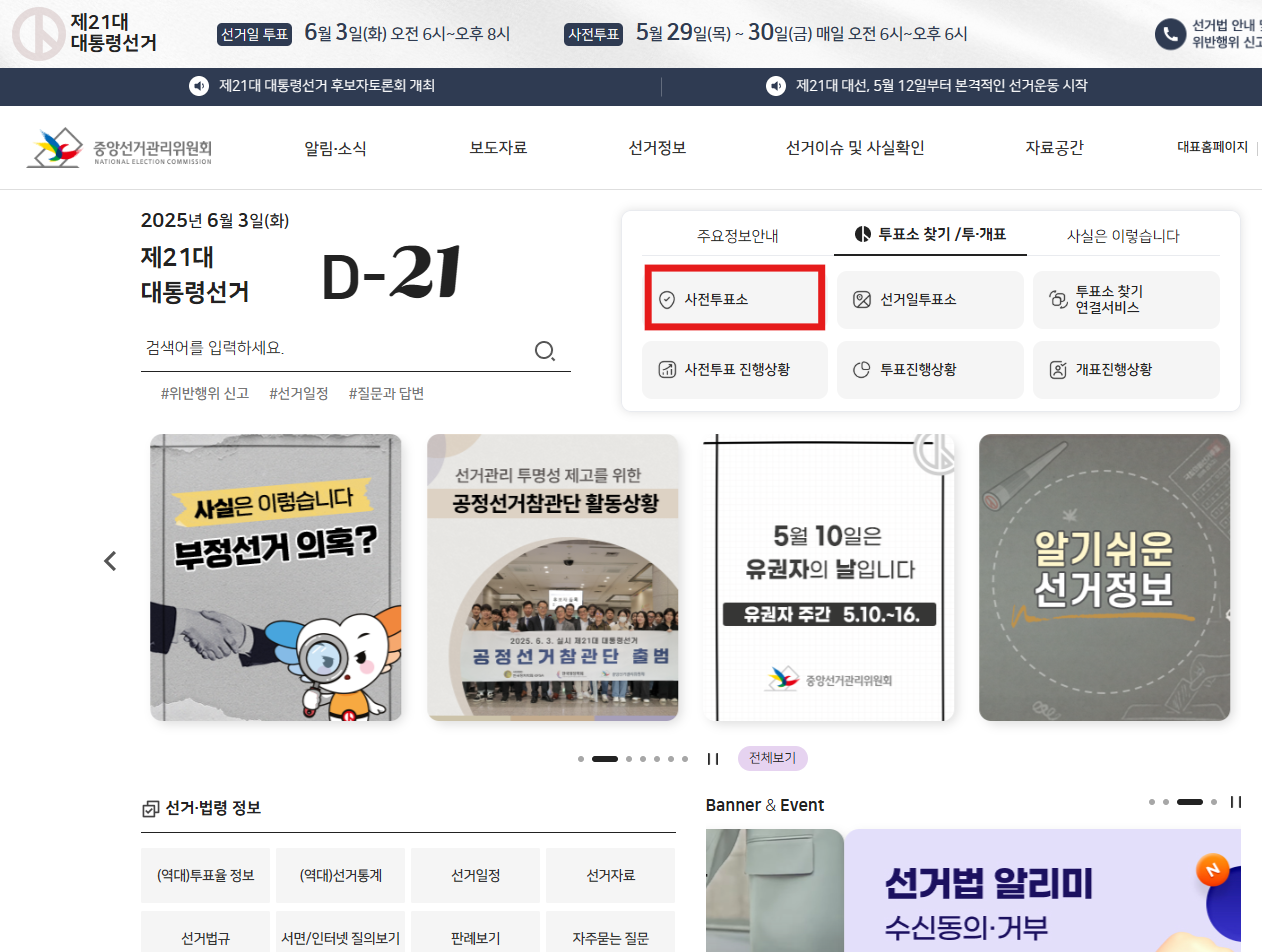 ✅중앙선거관리위원회 홈페이지를 통한 온라인 조회