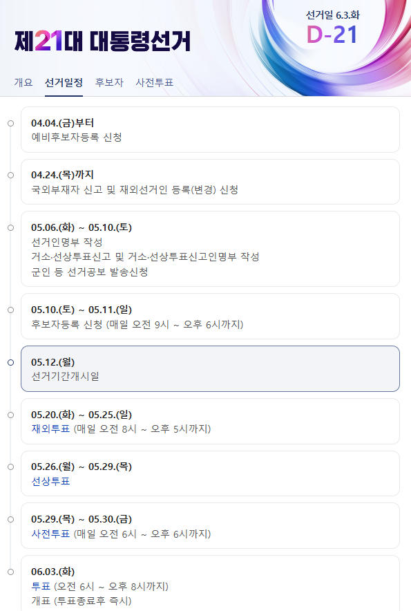 모든 유권자가 투표에 적극 참여할 수 있도록 선거 절차와 주요 일정을 꼼꼼히 정리했습니다.