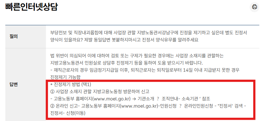 고용노동부, 지방노동관서 등에 진정을 제기할 수 있으며, 이는 근로자의 권익 보호를 위해 중요한 첫걸음입니다.