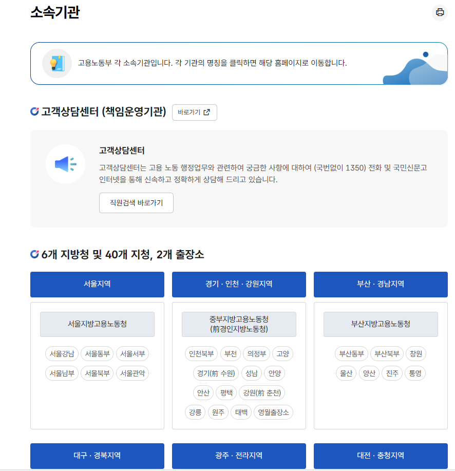 고용노동부 홈페이지에서 관한 고용노동청을 확인하십시오.