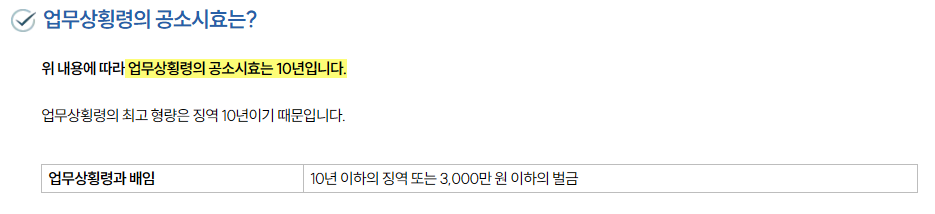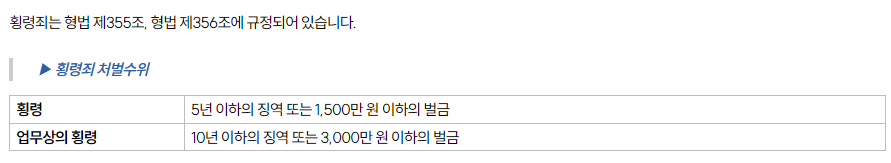 업무상 보관 중인 재산을 횡령 10년 이하 징역 또는 3,000만 원 이하 벌금