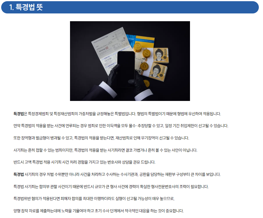 특히 금액 규모가 클 경우에는 특정경제범죄 가중처벌 등에 관한 법률(이하 특경법)이 적용되어 매우 중한 처벌을 받게 됩니다.