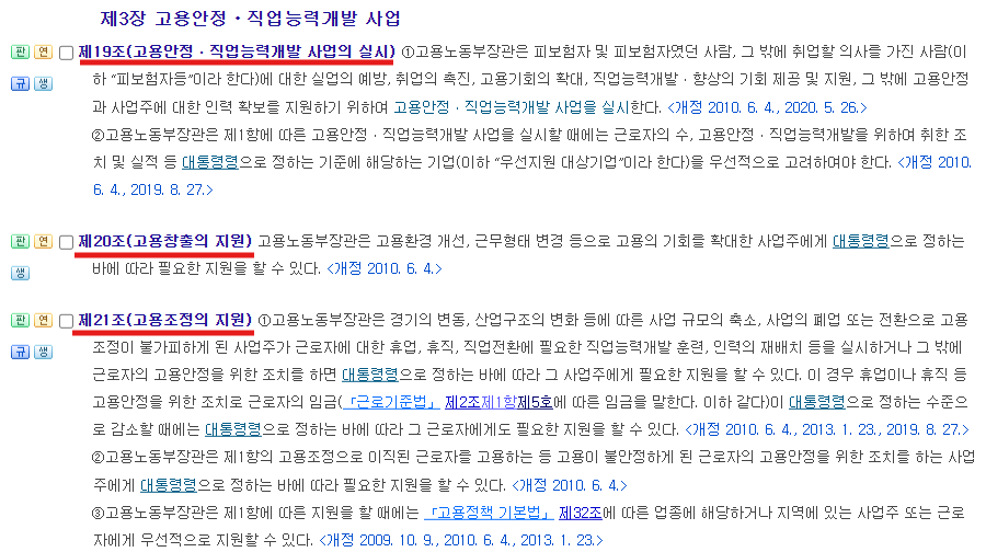 ⭕고용 관련법 시행령 제19조, 제20조, 제21조
