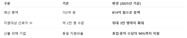 2025년에는 정부 추경 예산이 확정되며 고용유지지원금 제도에 다음과 같은 변화가 생겼습니다.
