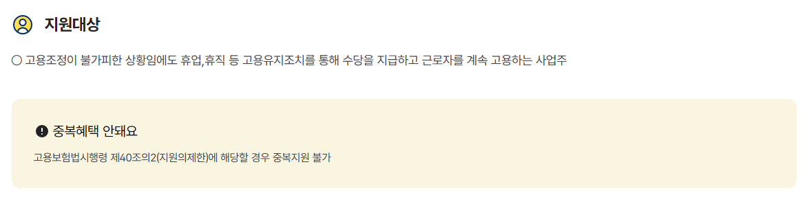 고용 관련법 시행령 제40조의 2에 따라 다른 고용 관련 지원제도와 중복지원 불가