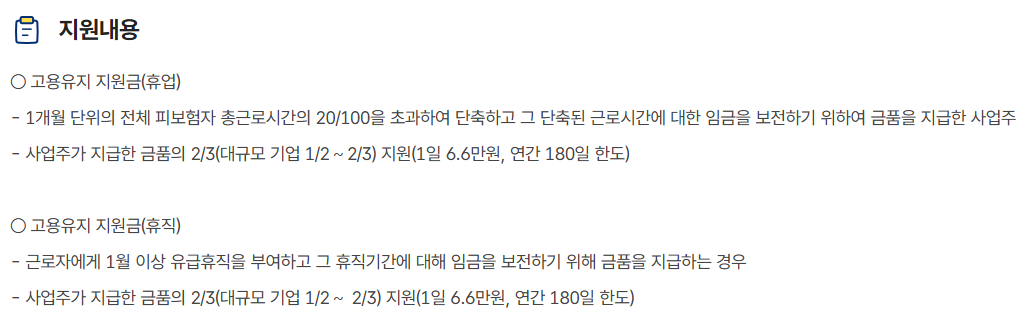 사업주가 지급한 유급휴업·유급휴직 수당의 일부를 정부가 현금 형태로 지원하는 제도입니다.