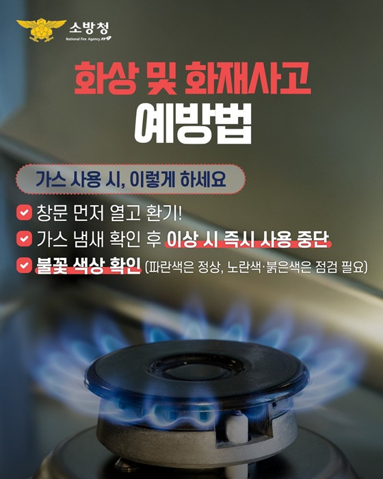 📍가스레인지 불꽃 색상 점검: 파란색은 정상, 노란색·붉은색은 점검 필요