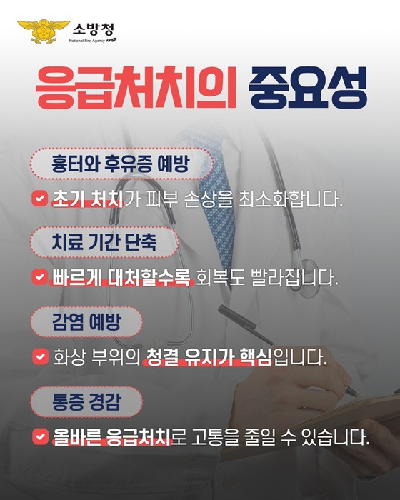 그러나 사전에 예방 수칙을 지키고, 화상이 발생했을 때 정확한 응급처치만 실천해도 후유증을 최소화할 수 있습니다.