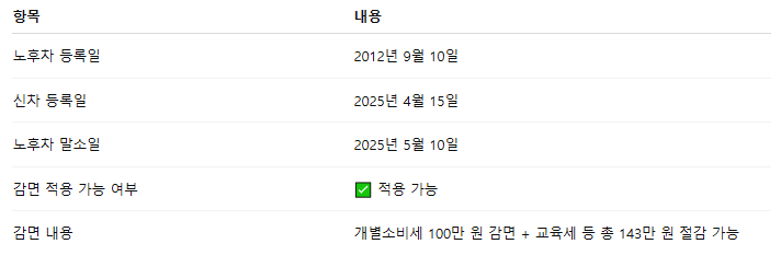 감면 혜택을 받기 위해서는 단순히 노후차를 보유하고 있는 것만으로는 부족합니다.