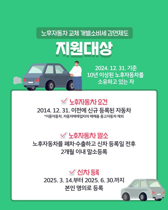 ① 2024년 12월 31일 기준으로 10년 이상 된 노후차량을 소유하고 있어야 하며,