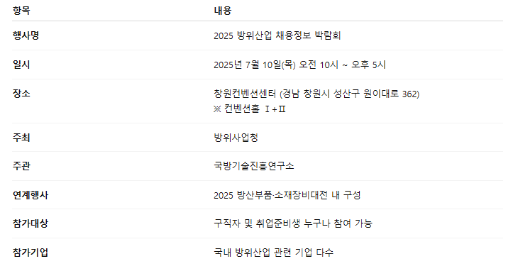 2025 방위산업 채용정보 박람회 개요