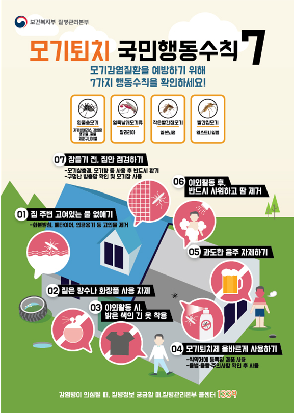 2025년 여름, 모기 매개 감염병 예방을 위한 생활 속 7가지 행동수칙을 실천하여, 내 가족과 이웃의 건강을 지켜보세요.