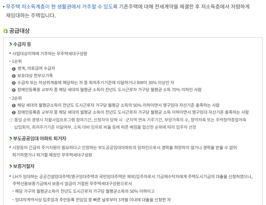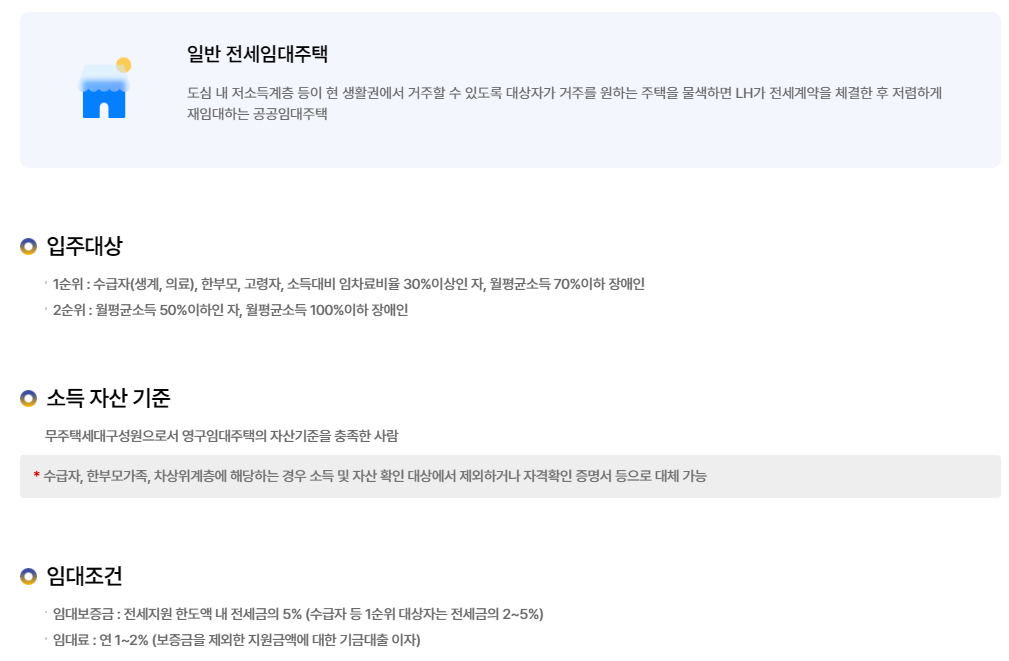※ 구체적인 기준은 매년 공고되는 LH 전세임대 모집공고를 참고해야 합니다.