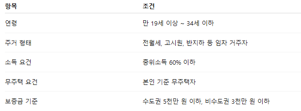 소득 요건과 임차 조건, 주거 형태를 모두 만족해야 신청이 가능합니다.
