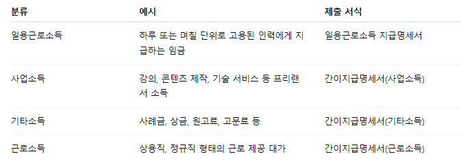 간이지급명세서는 주로 사업소득, 기타 소득, 근로소득(상용직) 등에 대한 내용을 다루며, 프리랜서나 고문, 단기 계약자가 대상입니다.