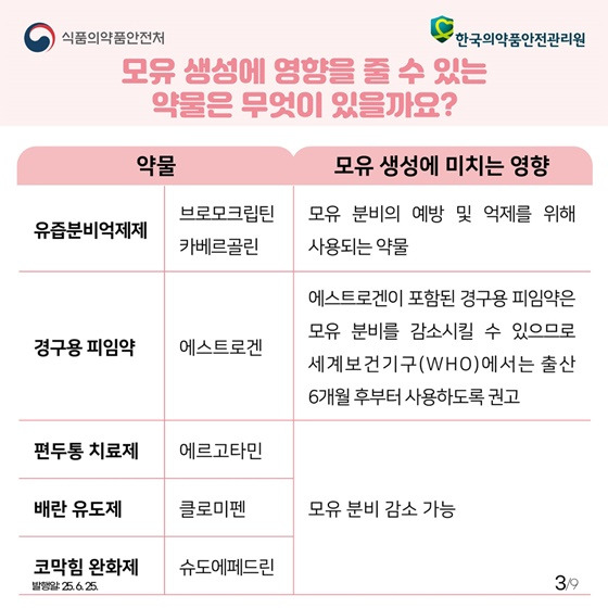 ☑️에스트로겐 성분이 포함된 경구용 호르몬제는 모유 분비를 줄일 수 있습니다.
