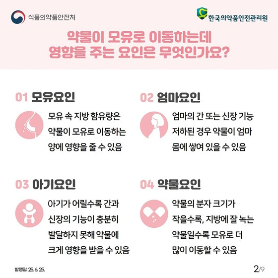 약물이 모유로 이동하는 데 영향을 주는 4가지 요인