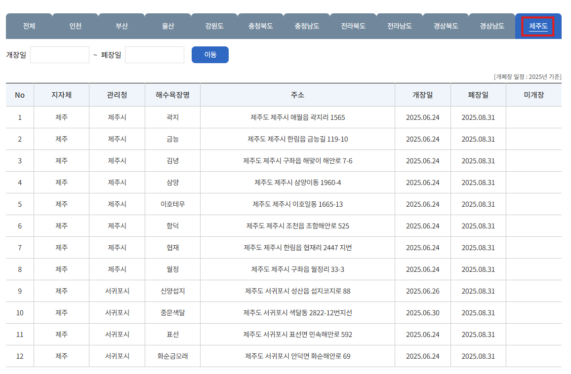 제주 지역 개장일