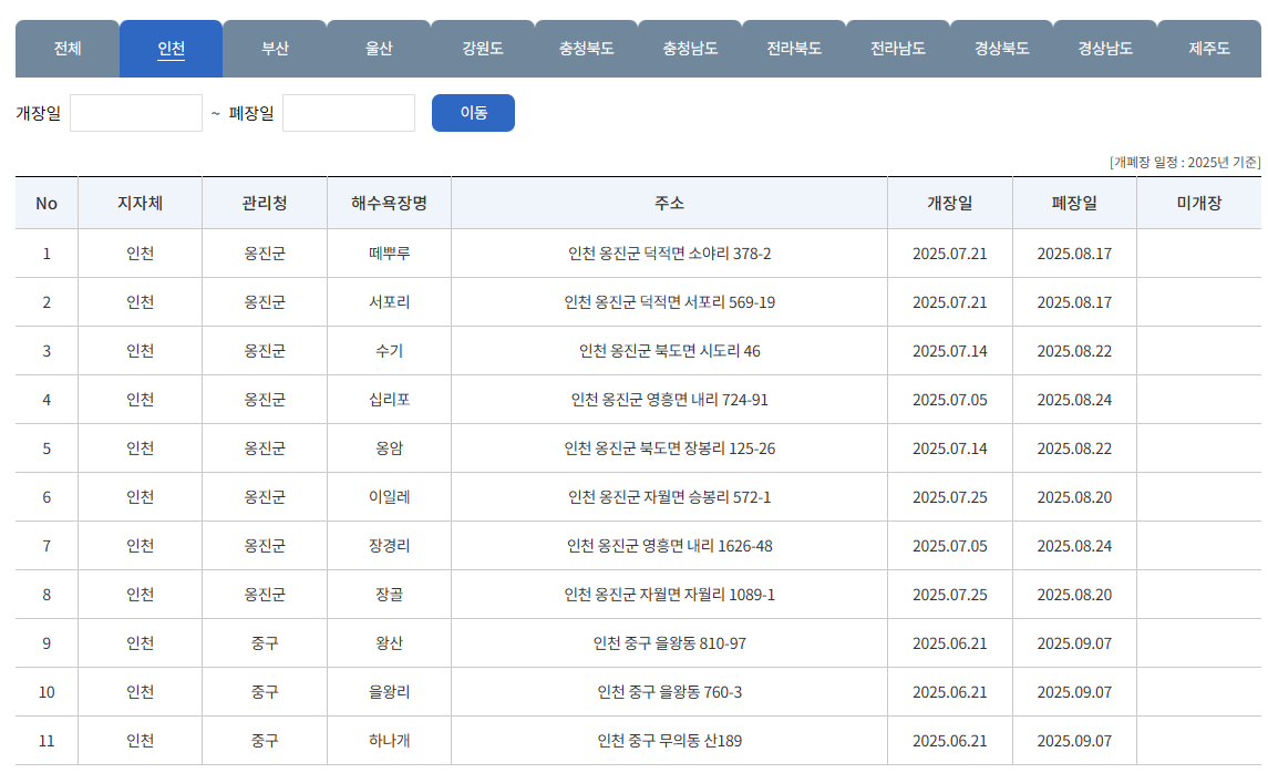 인천 지역 개장일
