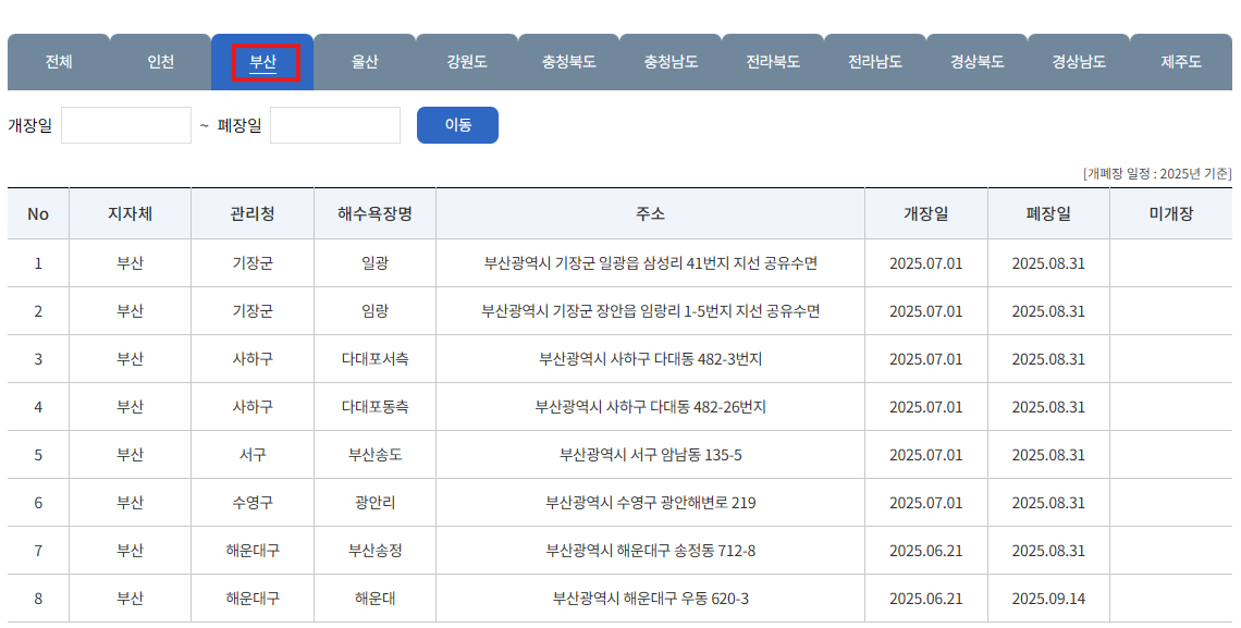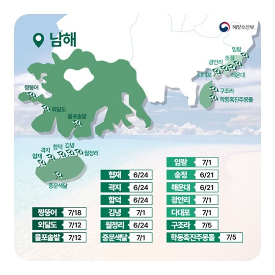 단, 각 해수욕장의 위치와 지자체 운영 계획에 따라 개장·폐장일이 다르므로 관할 시군구청 공식 홈페이지에서 확인하는 것이 가장 정확합니다.