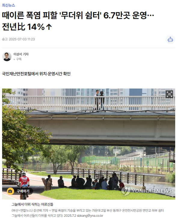 정부는 이런 상황을 고려해 전국 무더위쉼터 약 6만 8천여 곳을 운영하고 있으며, 2025년 9월 30일까지 운영 기간을 연장했습니다.