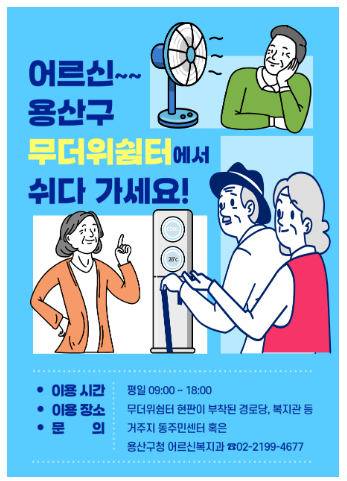주변 어르신, 이웃, 야외 근로자 분들께도 무더위쉼터 정보를 널리 알려 더 많은 분들이 안전하게 여름을 보내시도록 돕는 것이 필요합니다.