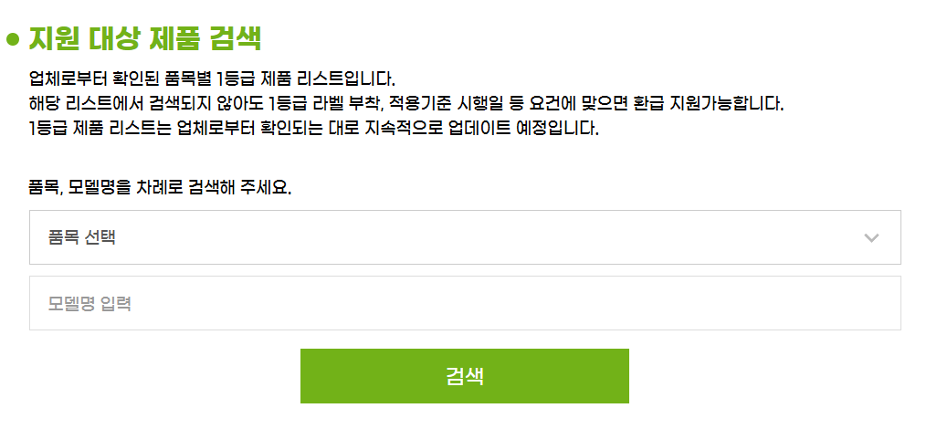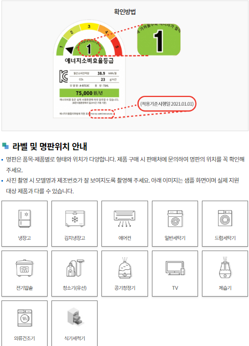 1등급 제품이더라도 한국에너지공단에 등록되지 않은 제품은 환급 대상에서 제외될 수 있습니다.