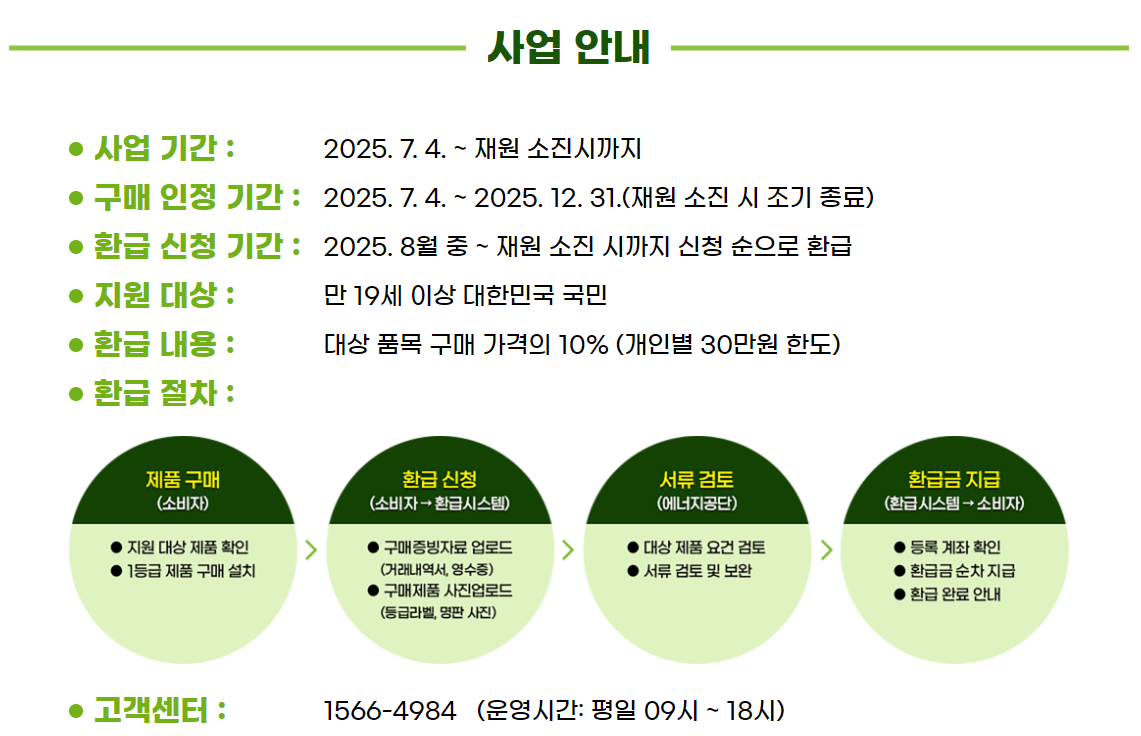 고효율 제품을 구매하셨다면, 안내센터 홈페이지를 통해 환급 대상 여부와 절차를 꼭 확인하시고, 정해진 기한 내에 신청을 완료하시기 바랍니다.