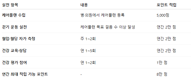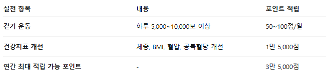 걷기와 같은 간단한 실천만으로도 실질적인 보상을 받을 수 있으며, 특히 만성질환 관리가 필요한 경우에는 더욱 유용하게 활용할 수 있습니다.