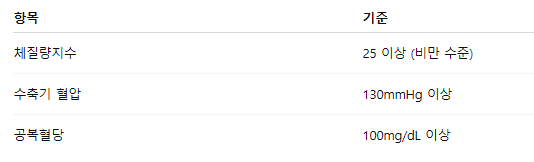 📍체질량지수(BMI), 혈압, 공복혈당 등 건강위험 지표 중 일정 기준 이상 초과한 경우