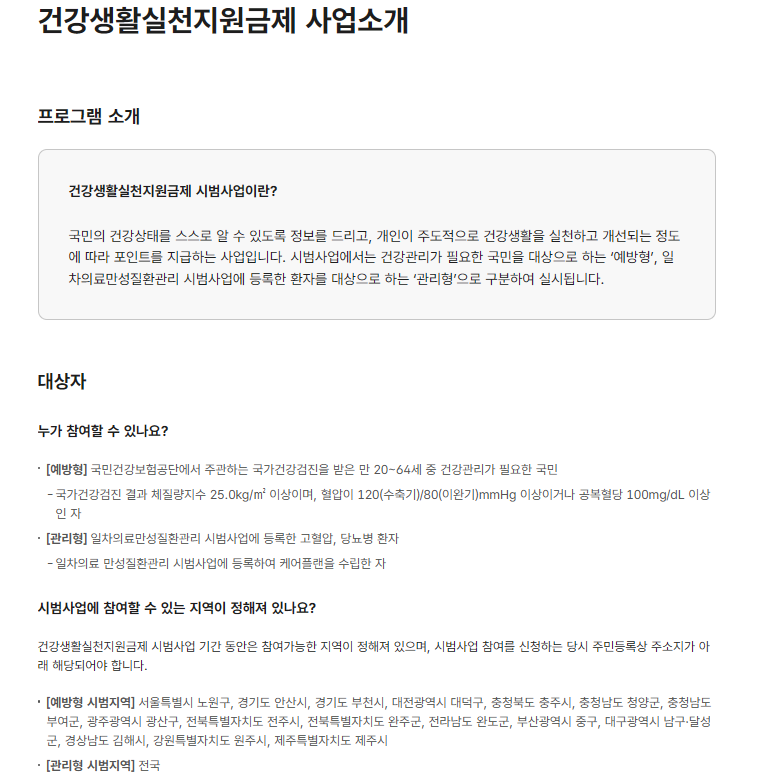 최근 시범사업으로 운영되고 있는 이 제도는 걷기 운동, 혈당·혈압 자가 측정, 식습관 개선 등 비교적 간단한 건강생활 실천을 통해 실제 사용 가능한 포인트를 지급하는 것이 핵심입니다.
