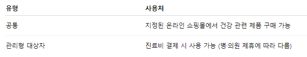 지정된 온라인 쇼핑몰에서 건강 관련 제품 구매 가능