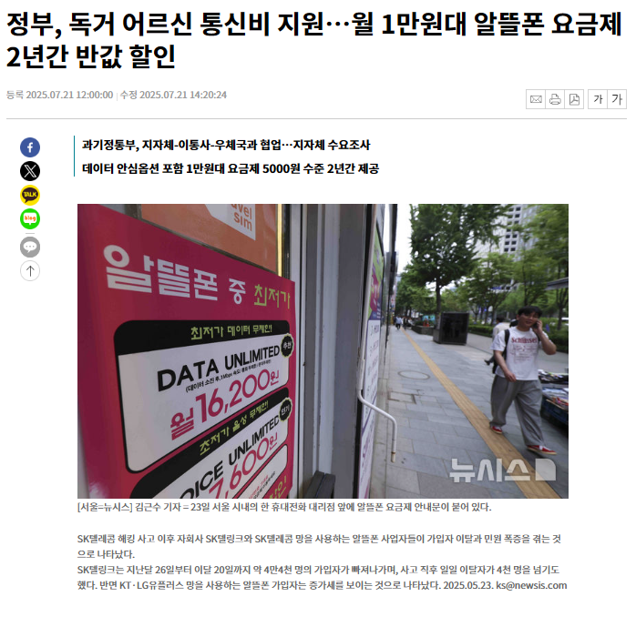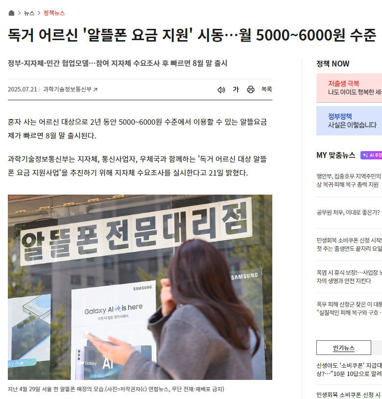 2025년 하반기부터 정부와 지자체, 민간 통신사가 협력하여 추진하는 ‘독거 어르신 대상 알뜰폰 요금 지원사업’이 본격 시행됩니다.