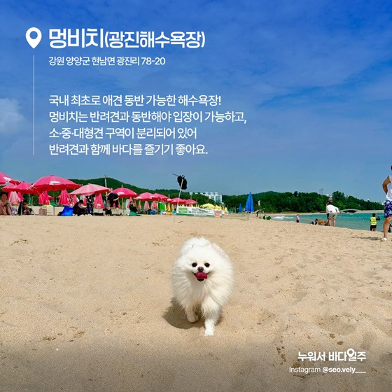 멍비치는 국내 최초로 공식적으로 반려견 동반 입장이 허용된 해수욕장입니다.