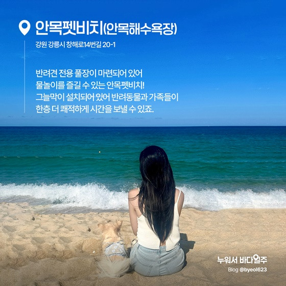 각 해변의 운영 특징, 시설, 이용 방법, 주의사항 등을 정리했으니 반려동물과 여름 휴가를 계획 중인 보호자라면 참고하시기 바랍니다.