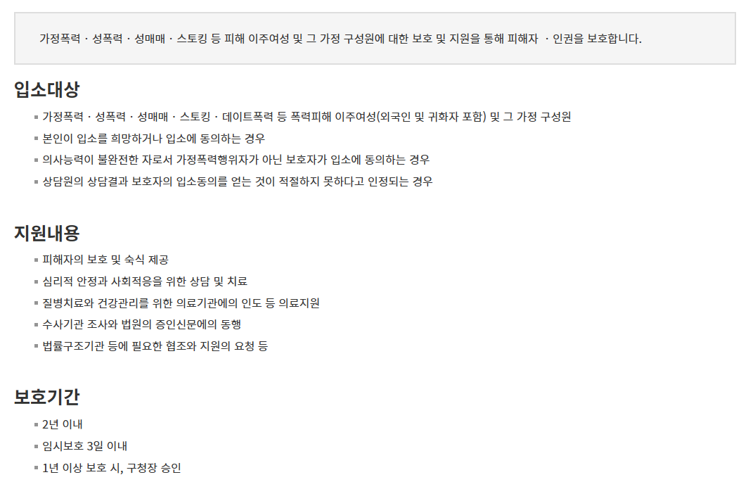 👉 보호시설은 단순히 ‘머무는 곳’이 아니라, 피해자가 다시 자립할 수 있도록 돕는 회복과 자활의 공간입니다.