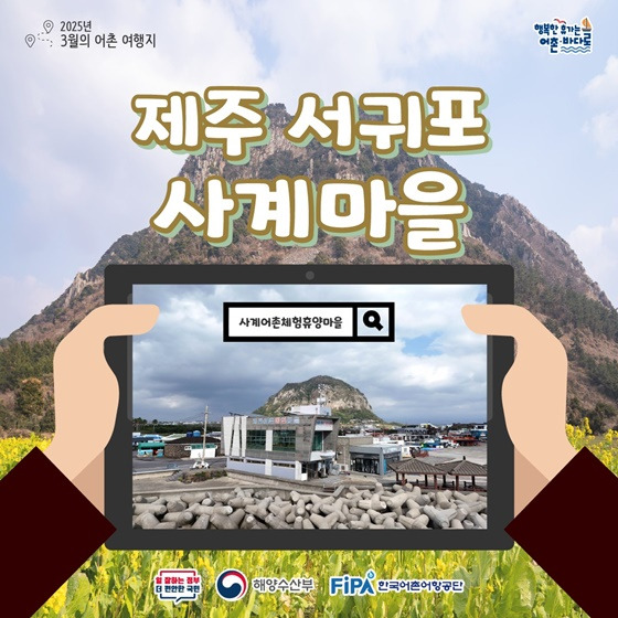 제주 서귀포시에 위치한 사계어촌체험휴양마을은 산방산과 용머리해안을 배경으로 한 아름다운 해변 마을입니다.