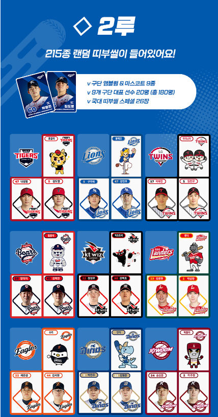 특히 크보빵에는 총 215종의 띠부씰이 랜덤으로 포함되어 있어, 원하는 선수의 스티커를 모으기 위해 여러 개의 빵을 구매하는 소비자들도 많습니다.