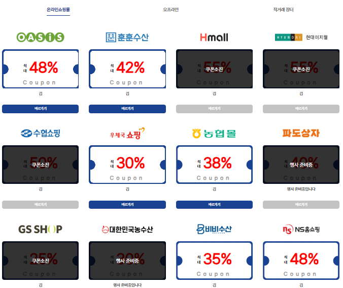 온라인 쇼핑몰은 해당 쇼핑몰에서 행사 상품을 확인한 후, 할인 쿠폰을 발급받아 구매 시 적용하면 할인이 적용됩니다.