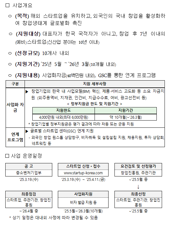 이 사업은 해외 창업자들이 한국에서 사업을 시작하고 성장할 수 있도록 지원하는 중요한 기회를 제공합니다.