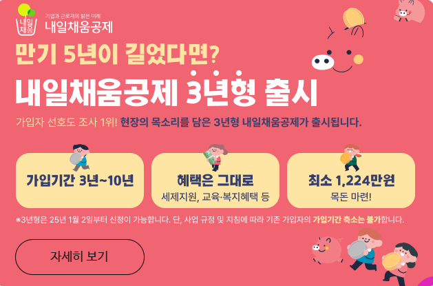 이 글에서는 내일채움공제 3년형에 대한 자세한 내용과 함께, 지원 대상, 가입 조건, 가입 방법, 혜택, 문의처 등을 안내드립니다.