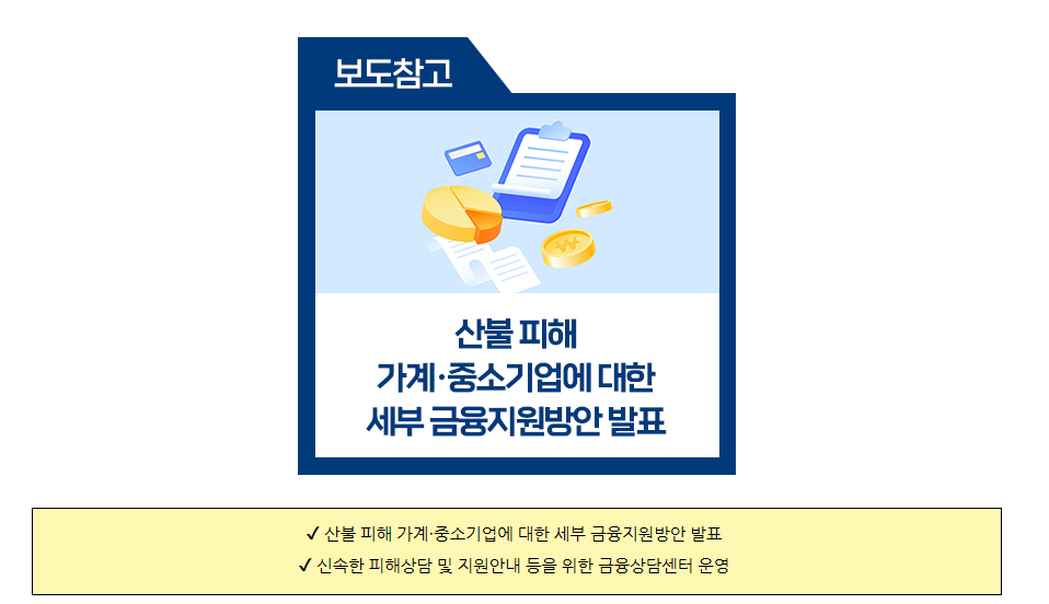 산불 피해를 입은 가계와 중소기업을 위한 금융지원은 피해 복구의 중요한 기반이 됩니다.