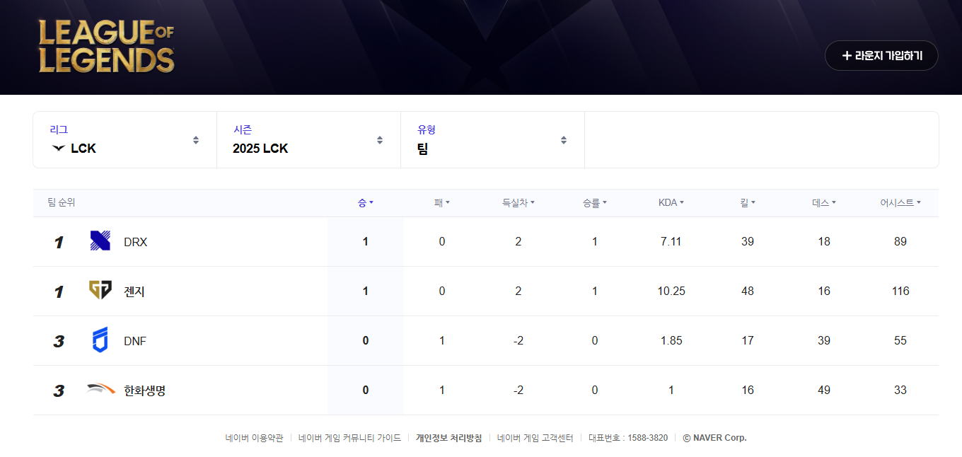 1경기: 한화생명 e스포츠(HLE) vs KT 롤스터(KT)