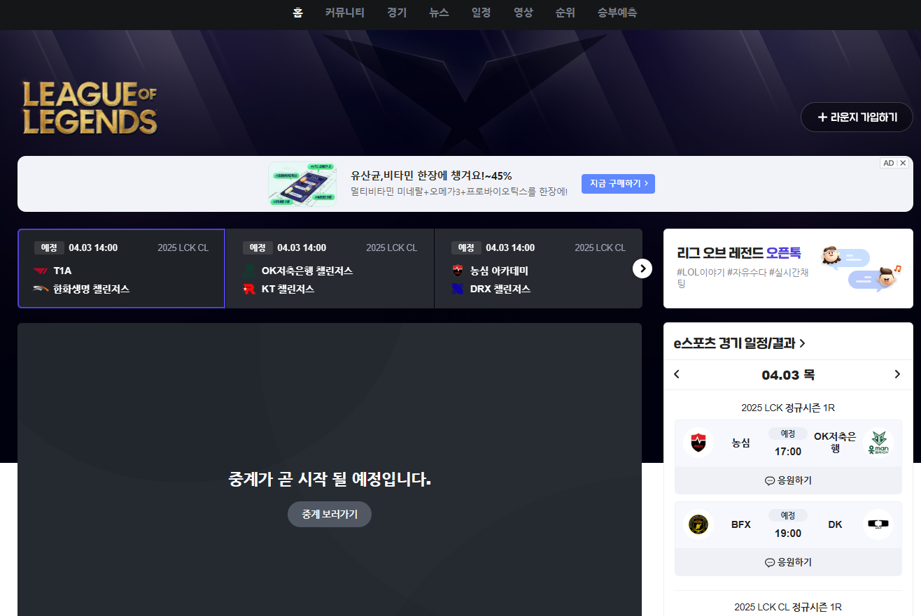 올해 LCK 정규 시즌은 4월 2일 개막하여, 아래와 같은 주요 경기가 진행됩니다.