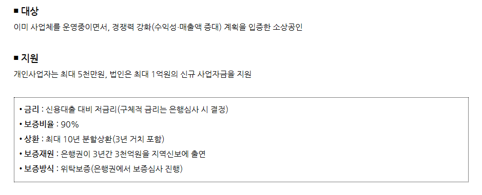 📍 법인사업자: 최대 1억 원의 신규 자금 지원