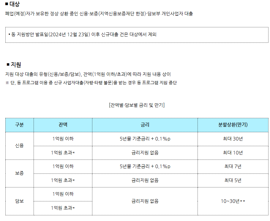 다만, 지원 대상은 과거에 실행된 금융상품 중 정상적으로 상환 중인 경우에 한정되며, 2024년 12월 23일 이후에 실행된 신규 상품은 제외됩니다.