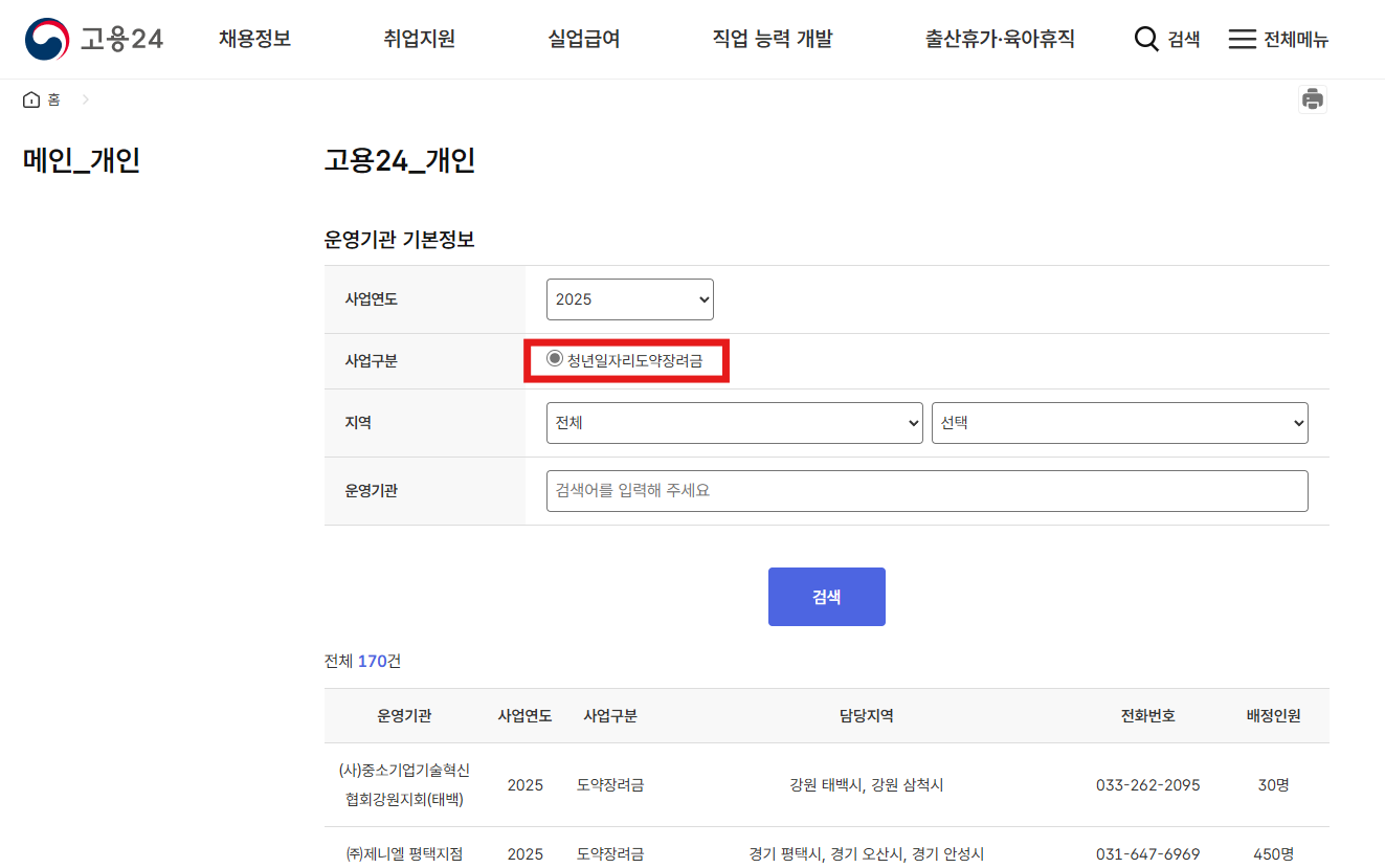 고용24 홈페이지에서 해당 지역 운영기관 연락처 확인 가능