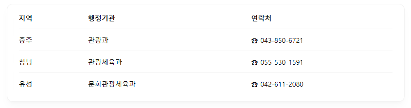 ✔️ 지역 관광지(산성, 전통시장, 박물관)와 연계해 당일 또는 1박 2일 코스로 구성 추천