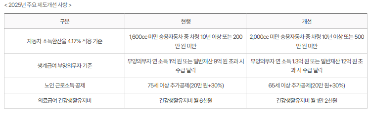 주요 제도별 기준표를 이미지로 캡처해두면, 제도 이용이나 상담 시 유용하게 활용할 수 있습니다.