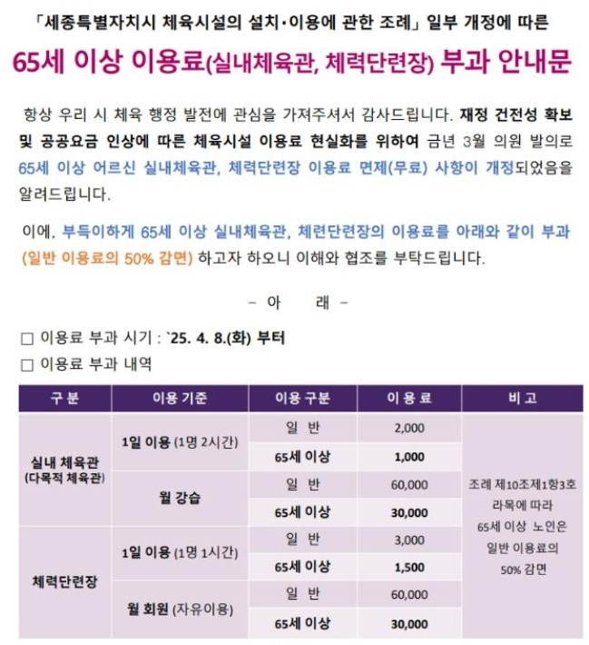 구립 체육관, 수영장, 탁구장 등 50~100% 감면